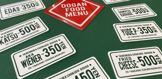 ナンバープレート風の居酒屋メニューを作りました!こちらが設置画像です!一緒にバスロールサ…