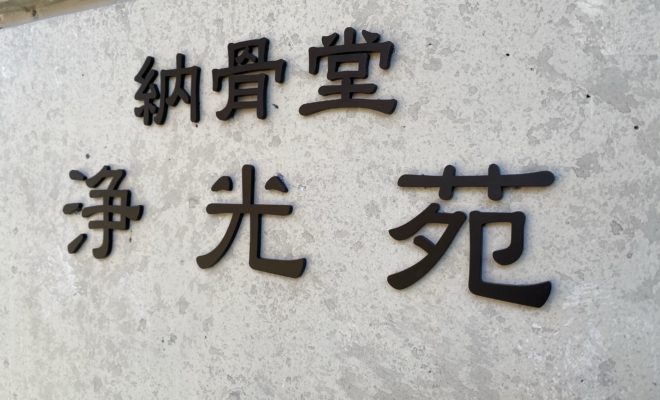 納骨堂の入口にステンレス切り文字のサインを設置致しました!今回は5mmのステンレスをレーザカット後、マットブラックで焼き付け塗装しています。裏側にピンを立てて、コンクリート壁面へ設置致しました!コンクリート壁面にマットブラックが…