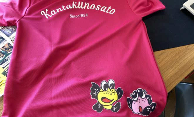 オリジナルTシャツの製作事例です。今回はイラストと文字をプリントしました。生地は人気のポリエステルドライ生地です。オリジナルTシャツ1枚から製作しております!…