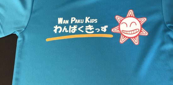学童保育のオリジナルTシャツを製作致しました。Tシャツの色はターコイズ、生地は人気のドライ生地で…