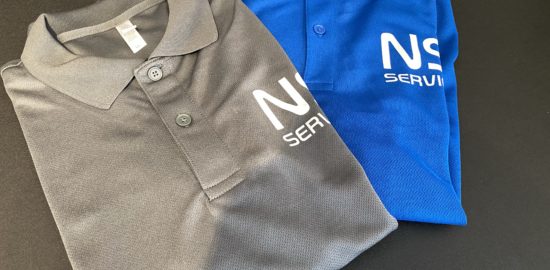 オリジナルポロシャツのご紹介です。今回は3連ちゃん(笑)胸元に社名をプリントフルカラーで小さい文…